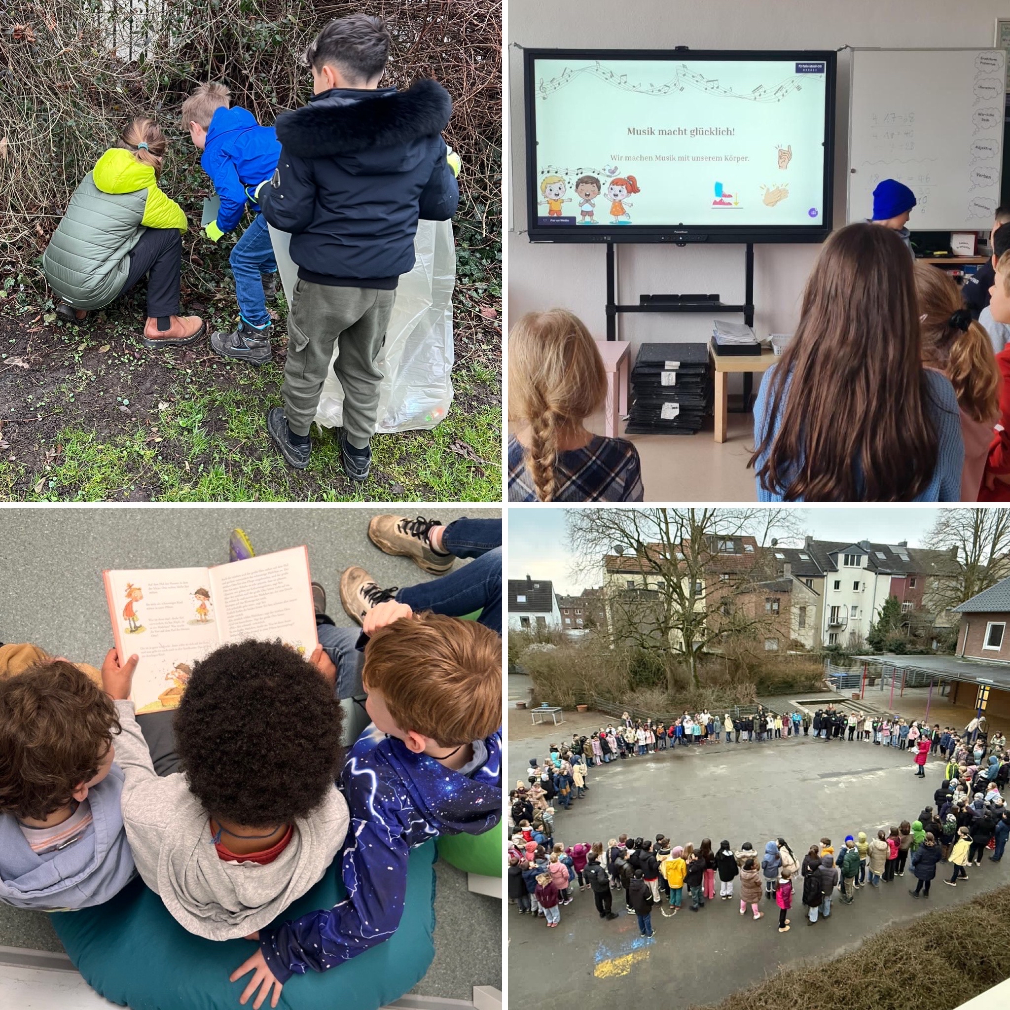 Die gesamte Schulgemeinde begann den besonderen Tag mit einem gemeinsamen Auftakt. Zusammen stimmten wir uns auf das Thema Glück ein und machten uns bewusst, wie viele kleine und große Dinge uns im Alltag glücklich machen können.