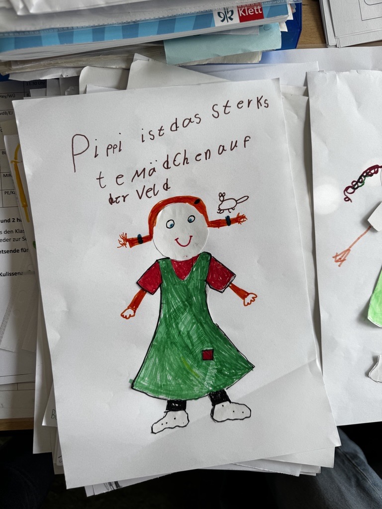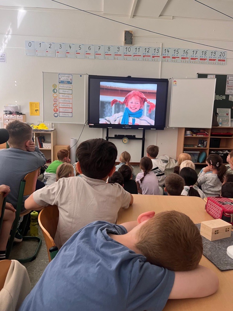 Jeder Morgen begann mit einem gemeinsamen Treffen auf dem Schulhof, bei dem das Lied „Hey, Pippi Langstrumpf“ lautstark gesungen wurde – ein fröhlicher Start in den Projekttag! Danach wurde in den Klassen thematisch gearbeitet: mit Filmausschnitten, kreativen Angeboten, Hörspielen, Aufgaben rund um Pippi und natürlich mit viel Zeit zum Üben der einzelnen Beiträge.