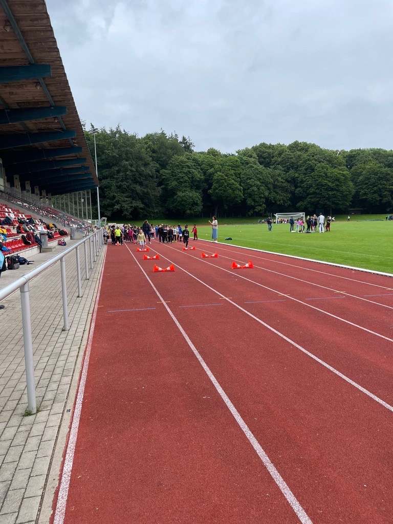 Morgens fuhren die Busse unsere sportlichen SchülerInnen zum Hohen Busch. Dort mussten die Kinder bei verschiedenen Disziplinen, wie dem Weitsprung, Hindernissprint, Transportlauf oder Stoßen ihr sportliches Können unter Beweis stellen. Die Kinder gaben bei den verschiedenen Disziplinen sichtlich ihr Bestes. Wir sind stolz auf euch!