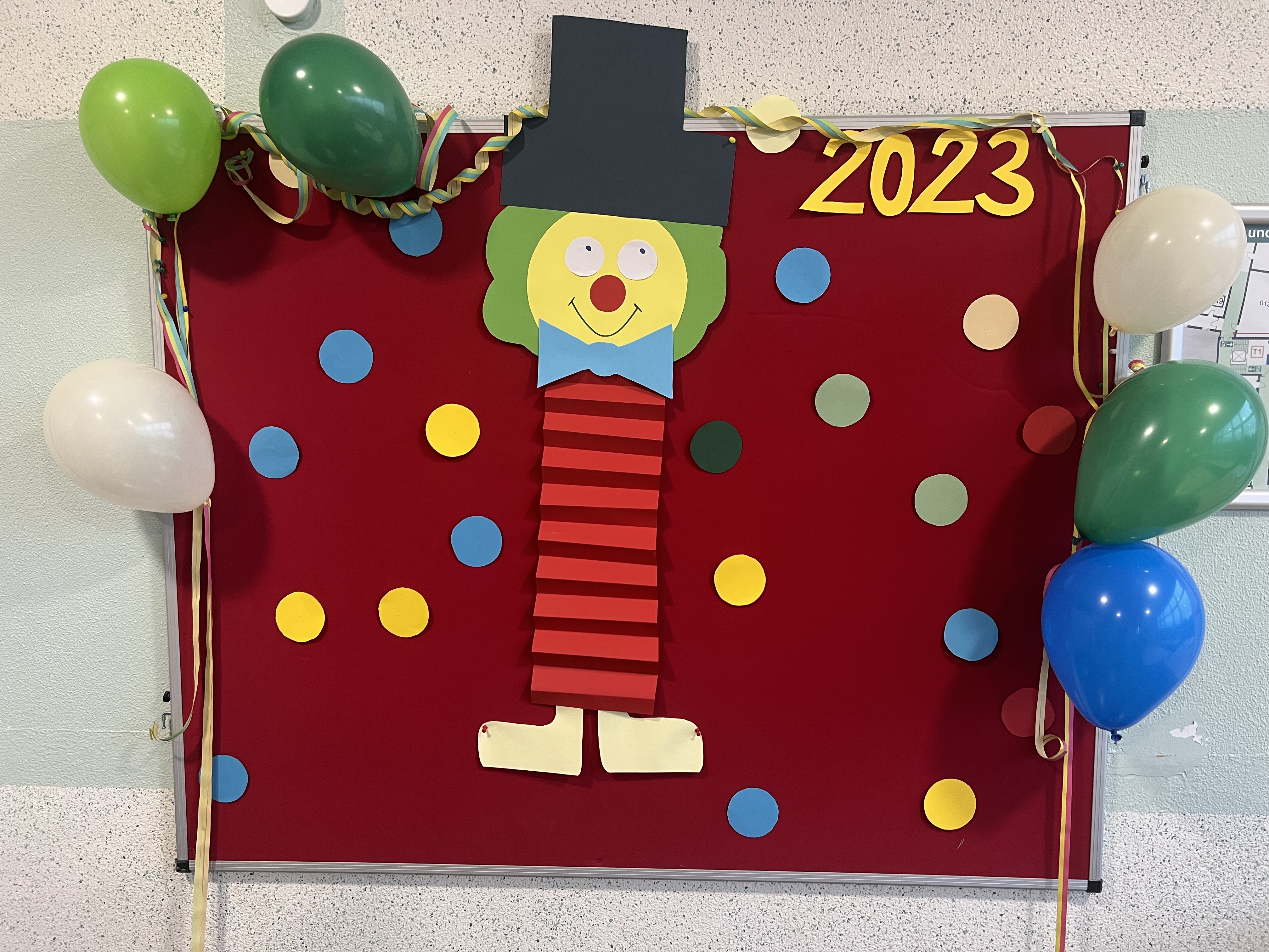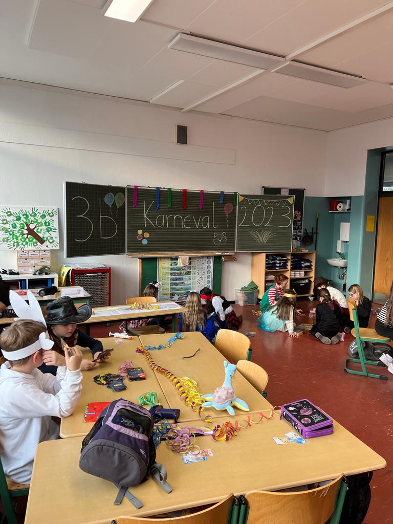 Am 16.02.2023 fand unsere Karnevalsfeier in der Remigiusschule statt. Die Klassenräume waren toll geschmückt und auf unserer Empore entstand wieder eine karnevalistische Fotowand. Alle großen und kleinen Menschen durften sich an diesem Morgen verkleiden und kamen kunterbunt zur Schule.