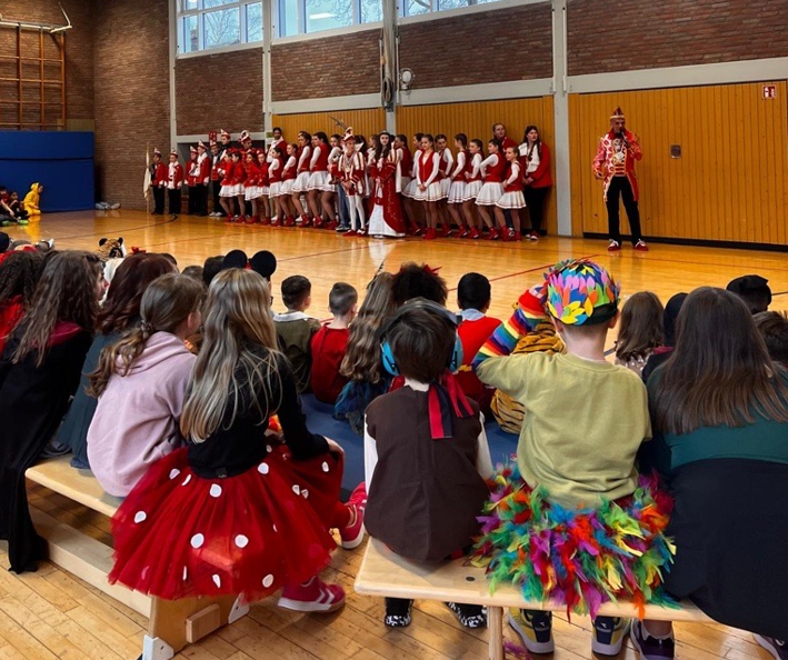 Der Tag begann mit einem verlängerten offenen Anfang. Danach versammelten sich alle in der Turnhalle, um gemeinsam den Höhepunkt des Programms zu erleben: Der Besuch des Rahser Prinzenpaars und der Tanzgarde. Auch in diesem Jahr sorgte die beeindruckende Vorstellung für ausgelassene Stimmung und brachte die Kinder zum Staunen.
