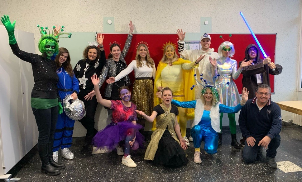 Am 28.02. feierte die Schulgemeinde der Remigiusschule ihr diesjähriges Karnevalsfest! Die Lehrerinnen und Lehrer hatten sich unter dem Motto "Weltall" verkleidet und begeisterten die Kinder mit ihren kreativen Kostümen.
