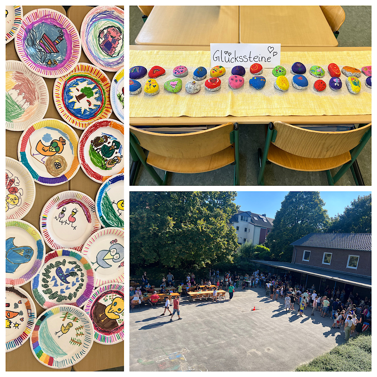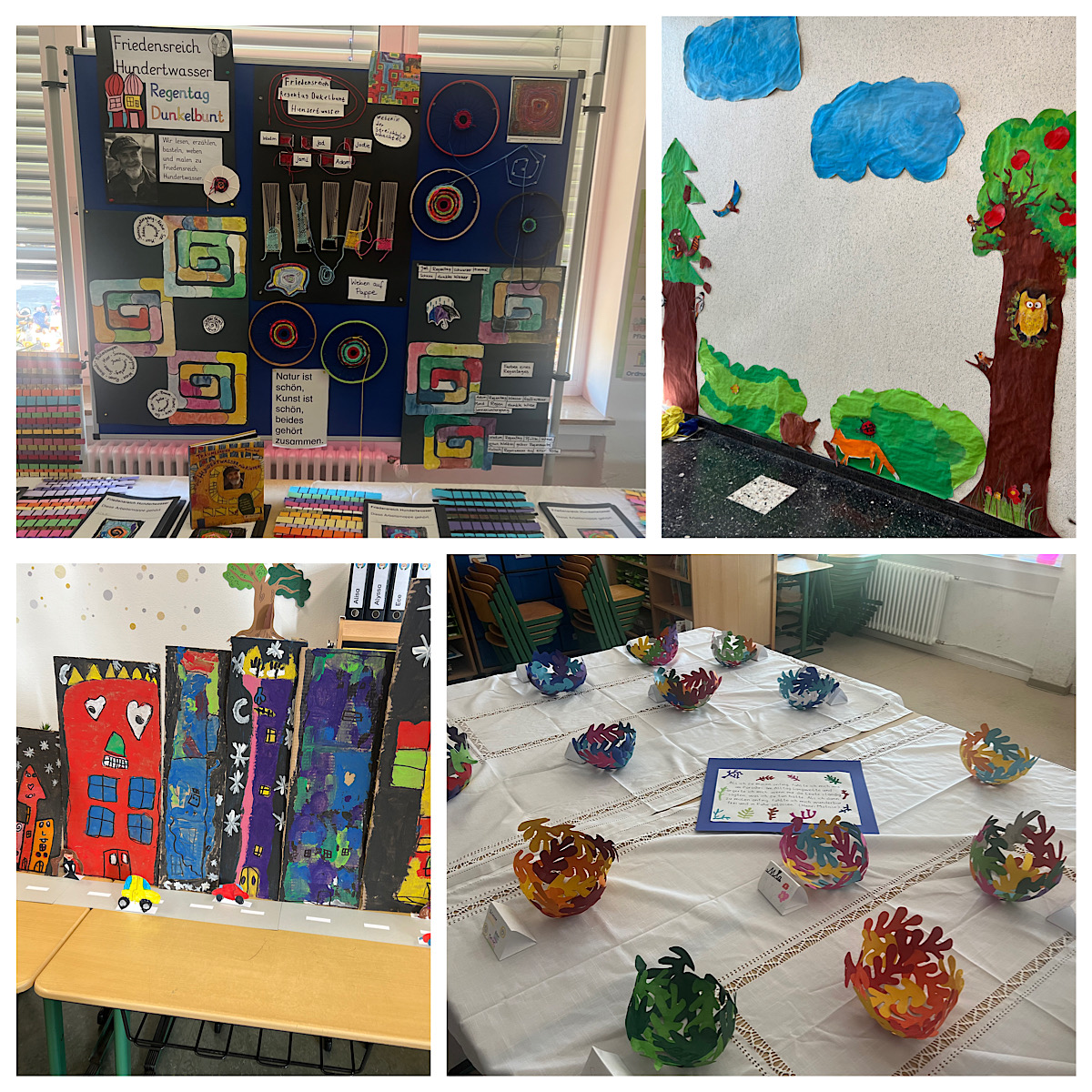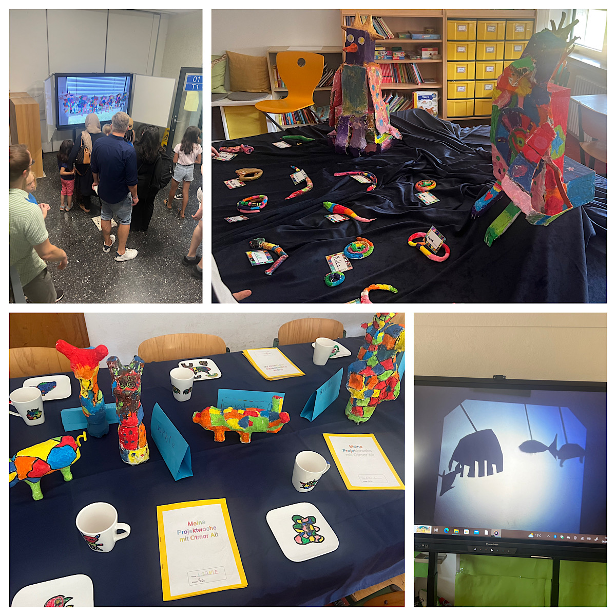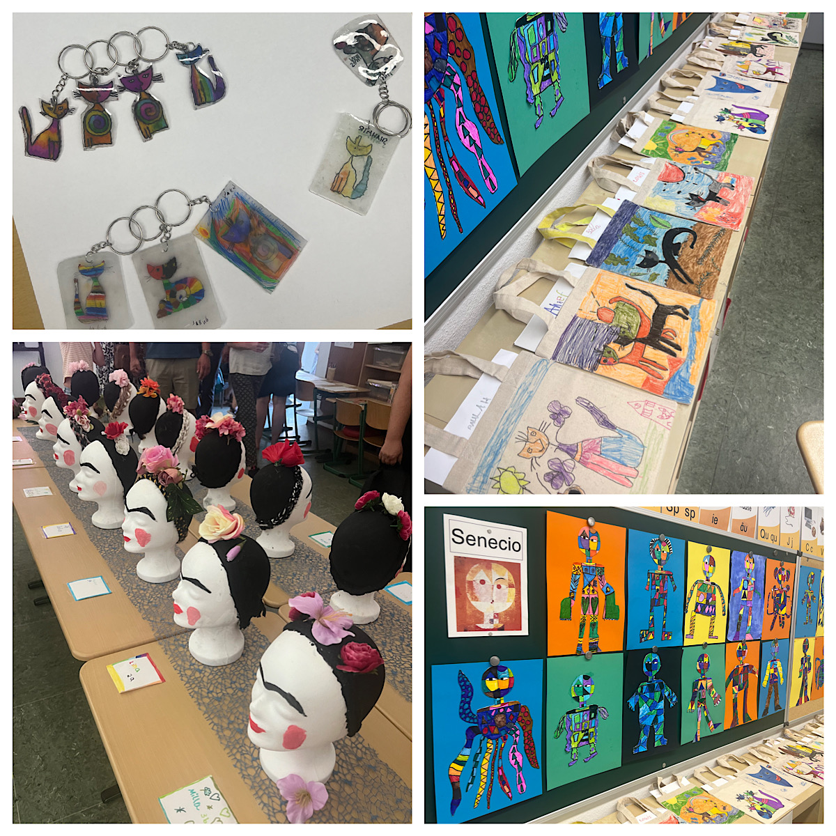 In dieser Woche hatten die SchülerInnen die Möglichkeit richtig kreativ zu werden und eigene Kunst herzustellen. So gestaltete eine Gruppe Styroporköpfe nach Frida Kahlo, eine Gruppe kreierte eigene Vasen nach Picasso. In anderen Gruppen wurden z.B. viele Katzenbilder nach Rosina Wachtmeister gemalt oder auch Skulpturen nach Niki de Saint Phalle erstellt. Die tollen Ergebnisse der Projektwoche wollten natürlich auch präsentiert werden. Daher lud die Remigiusschule alle Eltern und Kinder sowie auch interessierte Vorschulkinder mit ihren Eltern zur Projektpräsentation am Freitag, 08.09.23, zwischen 16-18 Uhr ein. In dieser Zeit wurden alle erstellten Kunstwerke ausgestellt, sodass man mit einem Rundgang durch die Schule alle Ergebnisse des Kunstprojektes bestaunen konnte. Der Schulhof lud außerdem bei Kaffee und Kuchen zum Verweilen ein.