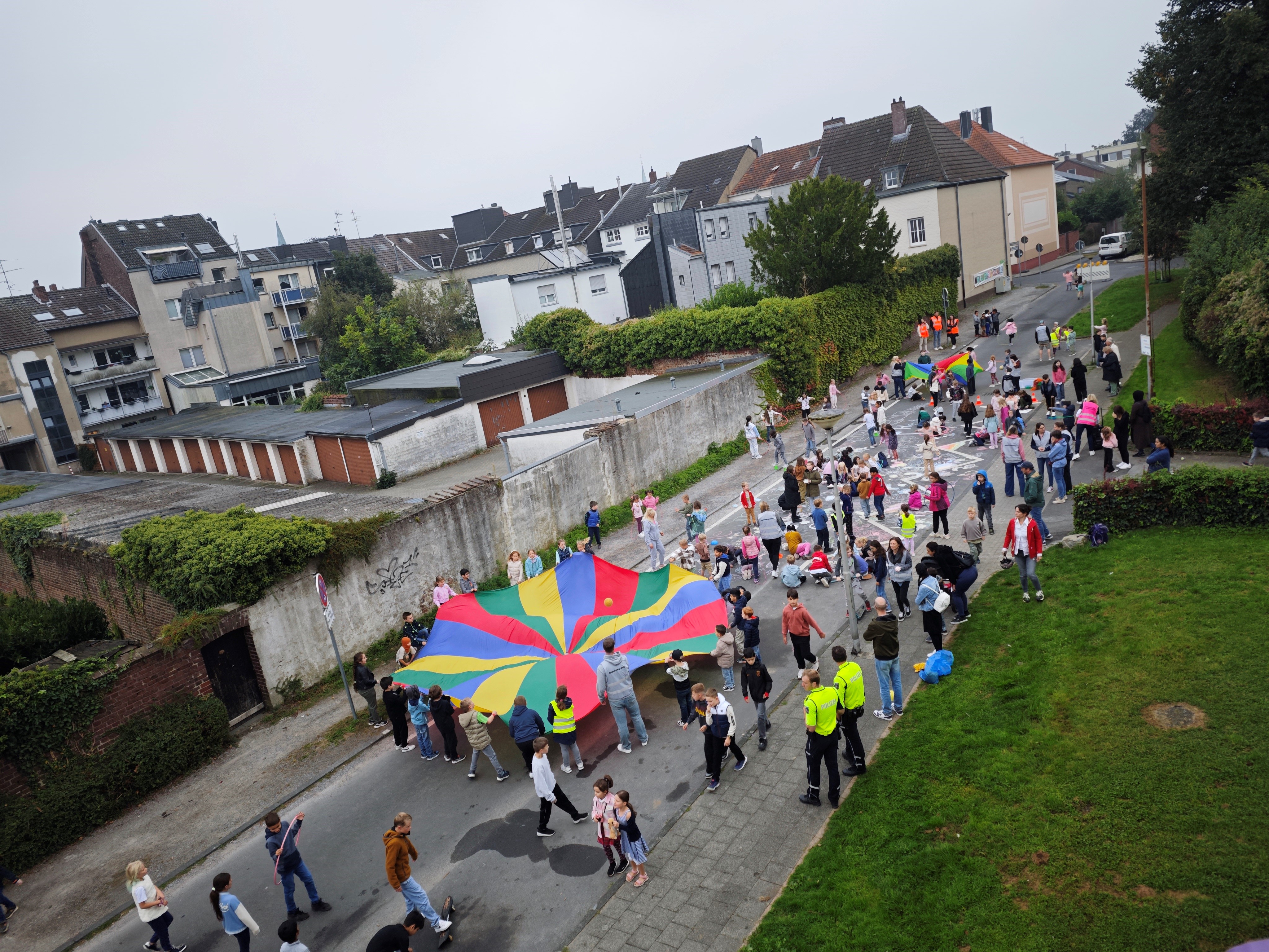 Am Mittwoch, 18.9.2024, fand in Absprache mit der Stadt Viersen, dem Ordnungsamt sowie der Polizei Viersen im Rahmen der Mobilitätswoche eine erneute Verkehrsaktion vor der Schule statt. Diese sollte ein weiteres Mal darauf aufmerksam machen, dass es für alle Kinder am sichersten ist, den Schulweg zu Fuß zu gehen.