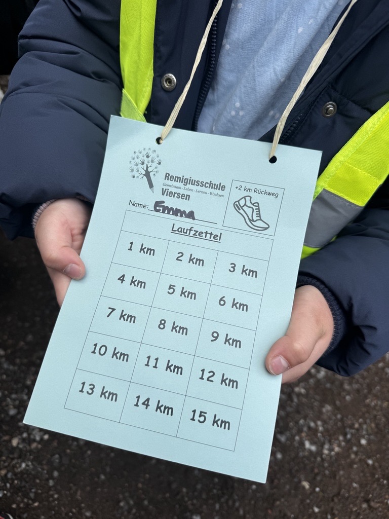 Das Wetter spielte glücklicherweise mit – kein Tropfen Regen trübte die Stimmung. Auch der Rückweg zur Schule wurde sportlich genutzt: Weitere 2 Kilometer kamen so auf den Laufzettel.