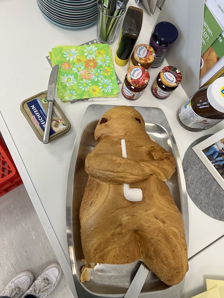 Am 7. November 2023 feierte die Remigiusschule St. Martin. Schon früh am Morgen duftete es ganz herrlich nach frischem Gebäck in den Räumlichkeiten der Remigiusschule. Jede Klasse bekam vom Förderverein zwei große Weckmänner spendiert. Diese wurden bei einem gemeinsamen Frühstück in den Klassen, ganz im Sinne des St. Martin, geteilt. Die vierten Schuljahre machten sich nach dem Frühstück auf den Weg zum Seniorenheim Maria Hilf, um dort für und mit den Seniorinnen und Senioren einige Martinslieder zu singen und zu teilen. Die Freude war den HeimbewohnerInnen ins Gesicht geschrieben.
