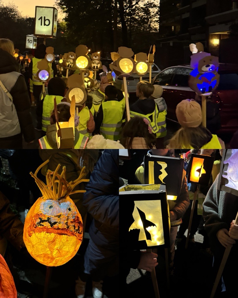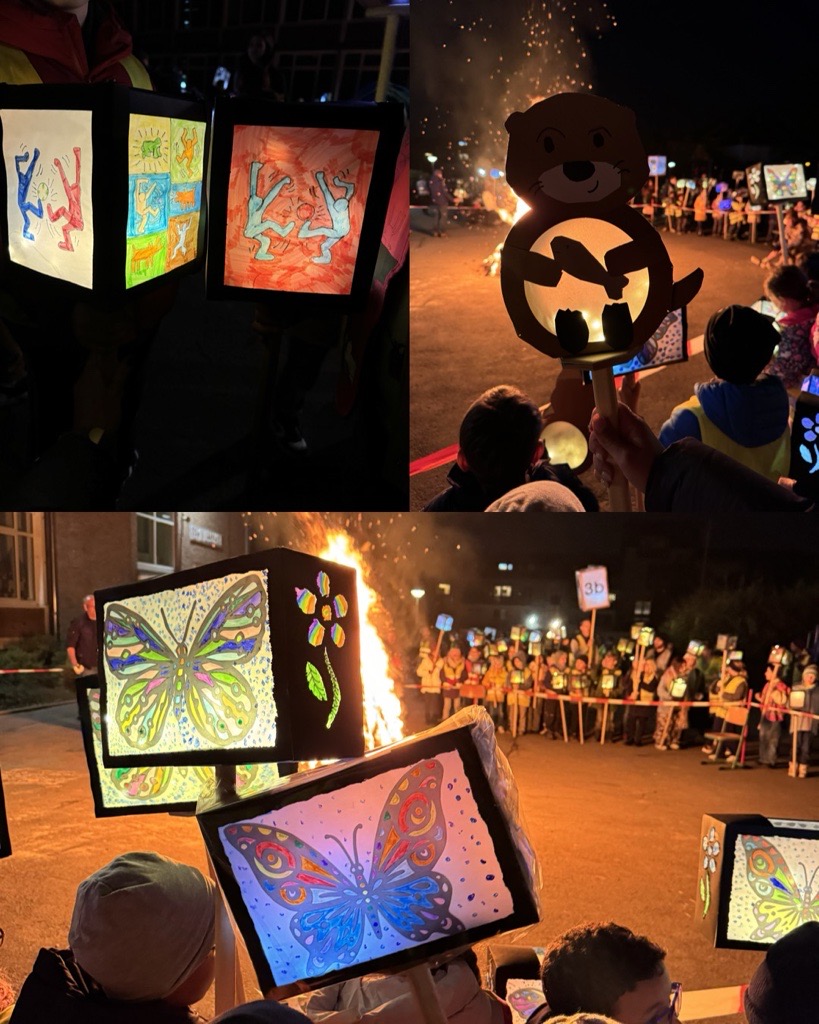 Am Abend versammelten sich alle für den traditionellen Martinszug, der wieder vom St. Martin auf seinem Pferd angeführt wurde. So zogen die Kinder mit ihren leuchtenden Laternen durch die Straßen Viersens und sangen kräftig Martinslieder. Der Höhepunkt des Festes war das große Feuer auf dem Schulhof, bei dem St. Martin seinen Mantel mit einem armen Mann teilte. Diese symbolische Geste erinnert an die Legende des heiligen Martin, der seinen Mantel mit einem frierenden Bettler teilte. Der Moment wurde von allen mit Andacht und Staunen verfolgt, und die Kinder lernen auf diese Weise, wie wichtig es ist, mit anderen zu teilen und sich füreinander einzusetzen.
