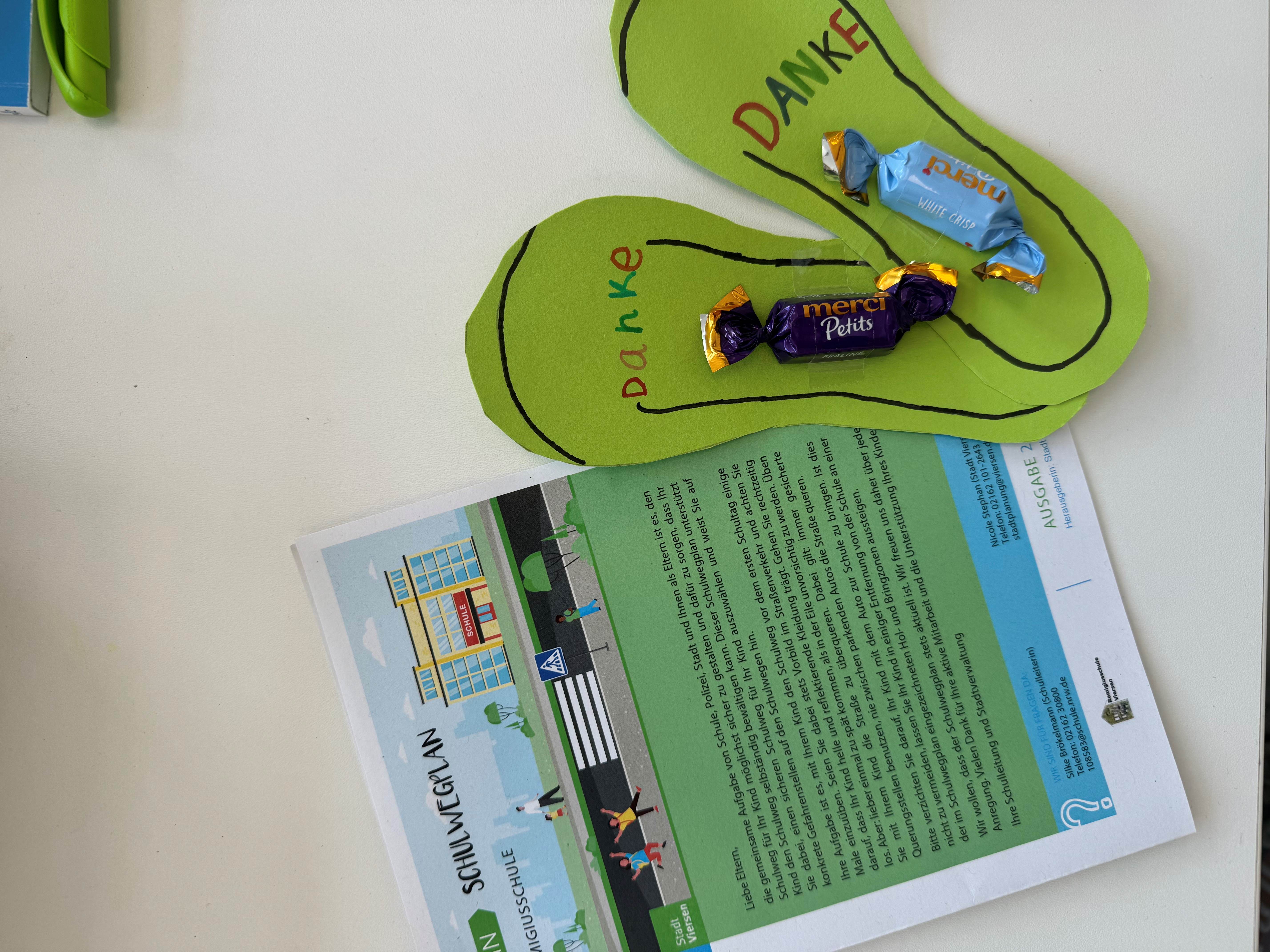 Am 04.09.24 fand eine große Verkehrsaktion in Zusammenarbeit mit der Polizei und der Stadt Viersen in der Umgebung unserer Schule statt. Diese Aktion orientierte sich an dem Verkehrszähmer-Programm, zur Vermeidung des Autoverkehrs vor Schulen. Auf Grund des absoluten Halteverbots auf der Straße vor unserer Schule, gibt es keine Möglichkeit zum Anhalten. Die Verkehrssituation ist somit zum Schulbeginn sehr unübersichtlich und gefährlich für unsere SchülerInnen. Die Stadt hat daher Hol-und Bringzonen eingerichtet. Dort kann mit dem Auto gehalten werden. Am 04.09. bekamen alle Eltern, die ihre Kinder zu Fuß zur Schule brachten, ein Dankeschön-Kärtchen von unseren SchülerInnen aus dem 3. Schuljahr überreicht, die diese für unseren Aktionstags gebastelt hatten. Eltern, die in die nahe Umgebung oder sogar in die Straße vor der Schule einfuhren, bekamen von der Polizei Schulwegspläne der Stadt Viersen, die unter anderem auf die Hol- und Bringzonen hinweisen. Wirklich toll war zu sehen, dass unsere SchülerInnen viele Dankeschön-Kärtchen verteilen durften!